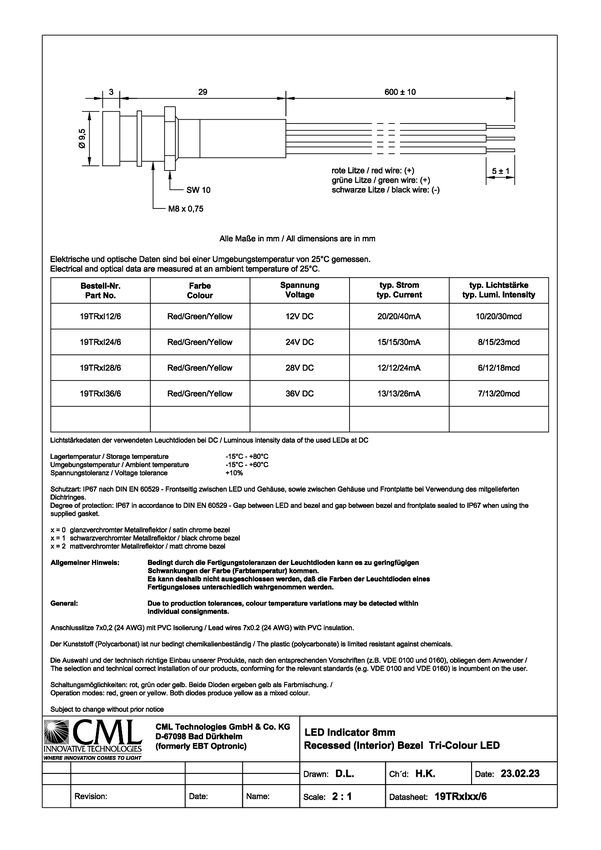 19TR0I12/6 CML 19TR0I12/6 Lampka sygnalizacyjna LED 19TR0I12/6, 10 mcd, 20 mcd...