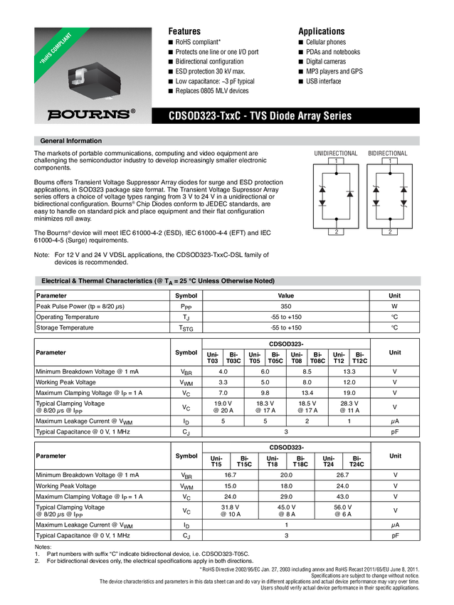 CDSOD323-T03C Dioda TVS Bourns CDSOD323-T03C, 1 szt.
