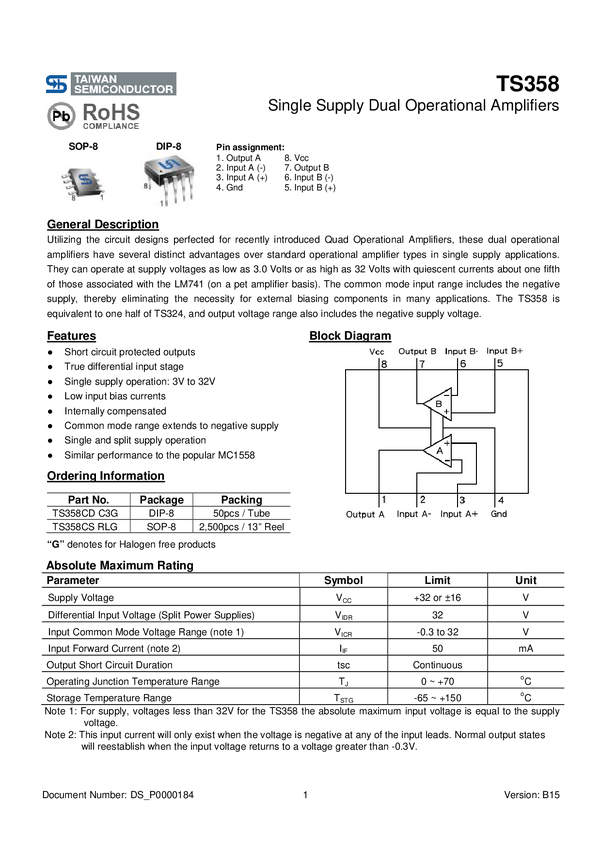 TS358CD C3G Układ scalony liniowy - wzmacniacz operacyjne, wzmacniacz buforowy Taiwan S...