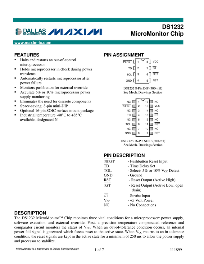 DS1232+ Maxim Integrated DS1232+ PMIC - pomiar energii przewlekany tuba