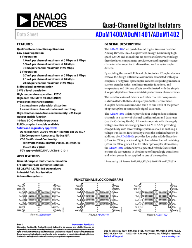 Izolator cyfrowy Analog Devices ADUM1402ARWZ ADUM1402ARWZ, 1 szt.