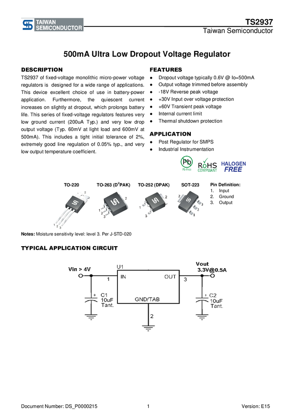 TS2937CP33 ROG Taiwan Semiconductor TS2937CP33 ROG PMIC - regulator napięcia - Liniowy (LD...