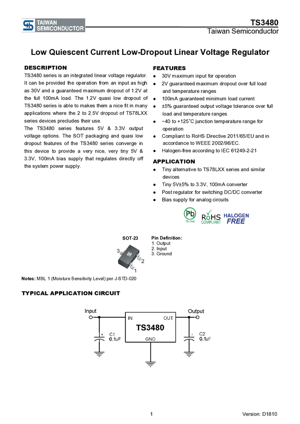TS3480CX33 RFG Taiwan Semiconductor TS3480CX33 RFG PMIC - regulator napięcia - Liniowy (LD...