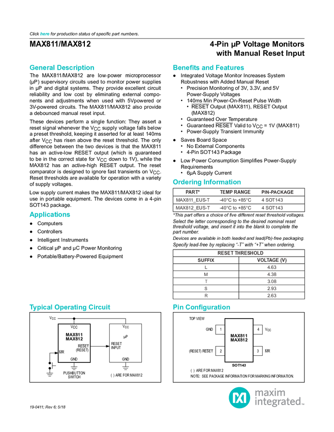 MAX811LEUS+T Maxim Integrated MAX811LEUS+T PMIC - pomiar energii mocowanie PCB taśma na...