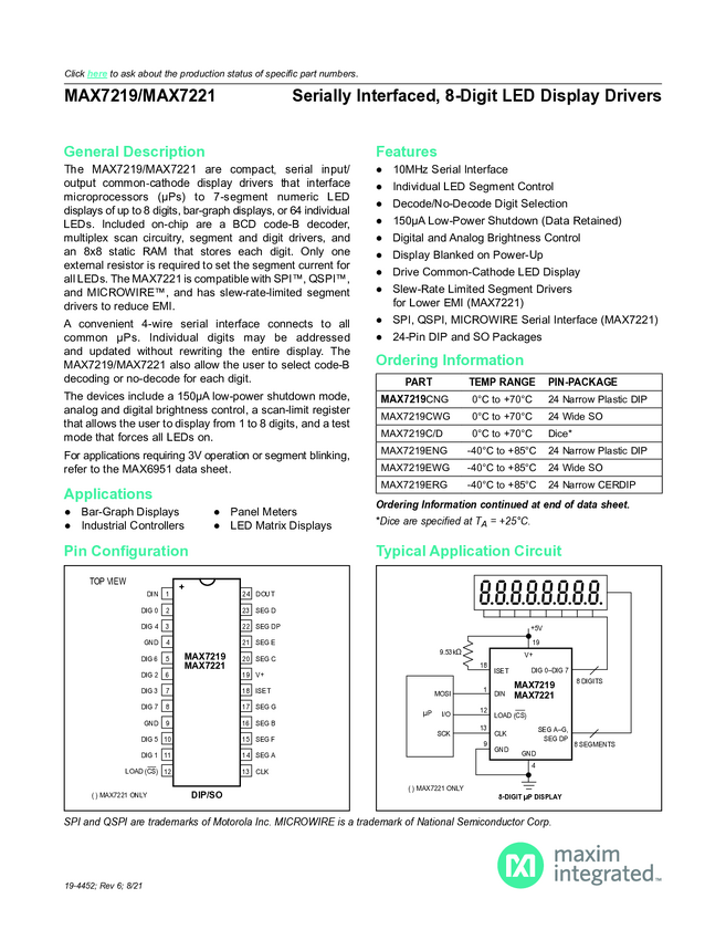 Maxim Integrated MAX7221CNG+ PMIC - pomiar energii przewlekany tuba