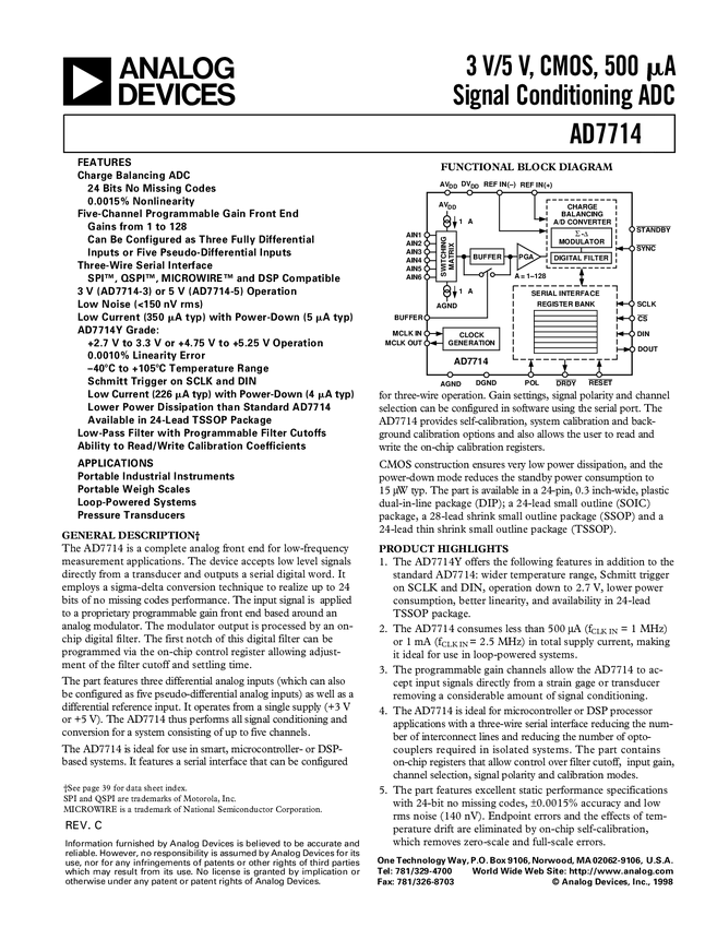 AD7714ANZ-5 Układy scalone akwizycji danych - przetwornik analogowo / cyfrowy (ADC)...