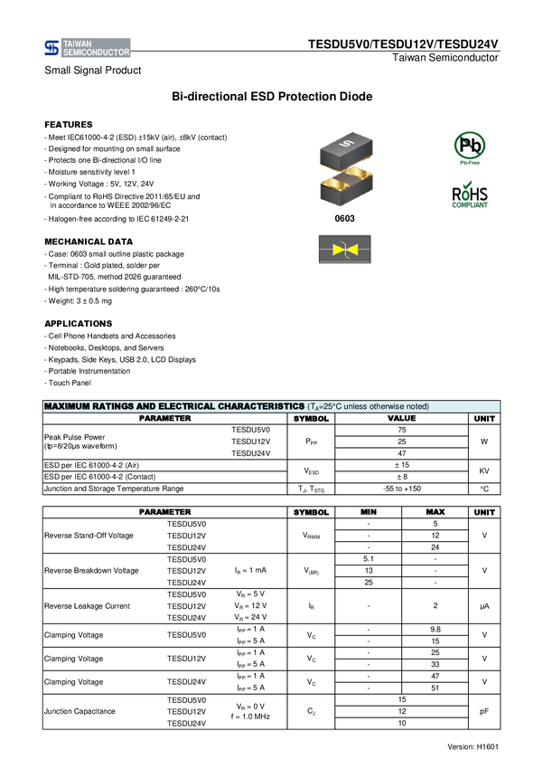 Dioda ESD Taiwan Semiconductor TESDU12V RGG TESDU12V RGG, 1 szt.