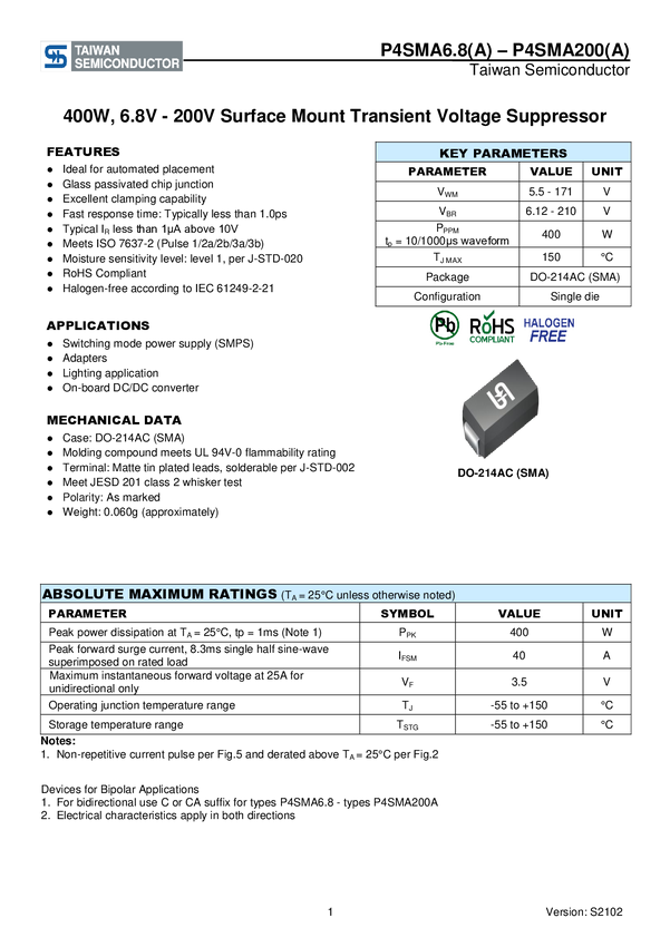P4SMA33A Dioda TVS Taiwan Semiconductor P4SMA33A P4SMA33A, 1 szt.