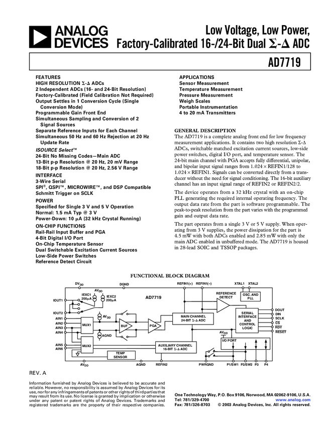 Układy scalone akwizycji danych - przetwornik analogowo / cyfrowy (ADC) Analog Devices AD7719BRZ