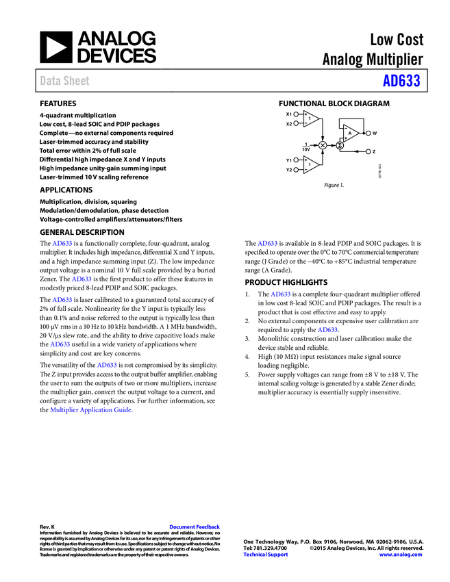 Układ scalony liniowy Analog Devices AD633JNZ AD633JNZ, 1 szt.