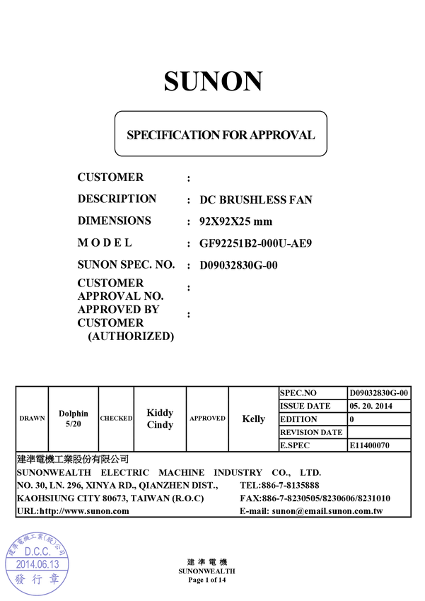 GF92251B2-000U-AE9 Sunon GF92251B2-000U-AE9 Wentylator osiowy 12 V/DC 118.9 m³/h (D x...