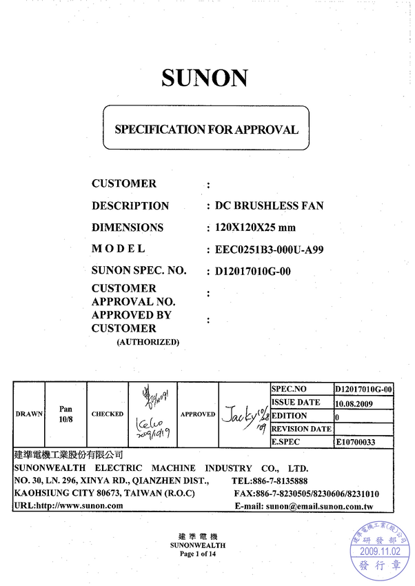 EEC0251B3-000U-A99 Wentylator osiowy Sunon EEC0251B3-000U-A99, 12 V/DC, 127.39 m³/h, (...