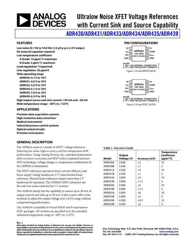 ADR435: Ultralow Noise XFET® 5.0V Voltage Reference /Current Sink and Source Capability