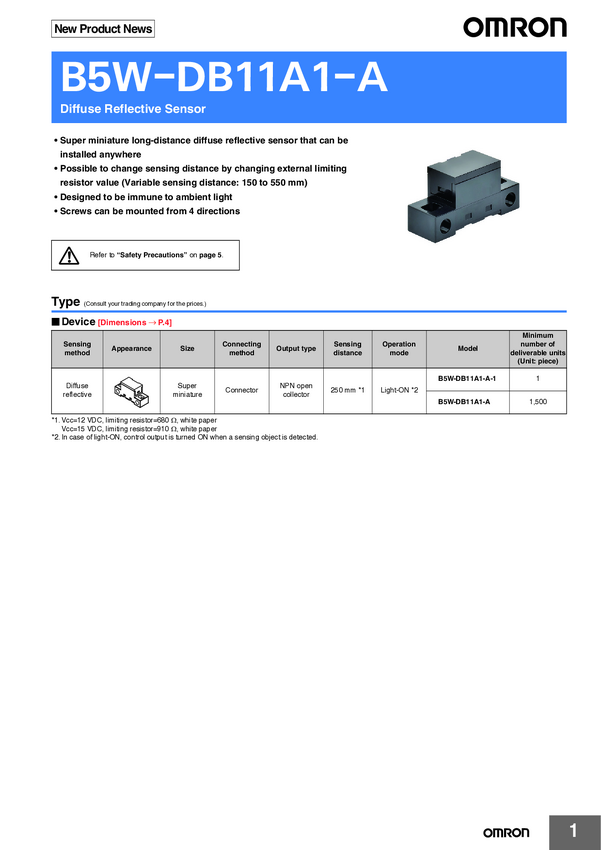 B5W-DB11A1-A-1 Fotokomórka refleksyjna Omron B5W-DB11A1-A-1 B5W-DB11A1-A-1 1 szt.