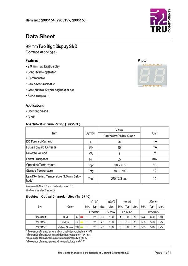 TC-11612616 Dwucyfrowy wyświetlacz TRU COMPONENTS TC-11612616 9 mcd 1 szt.