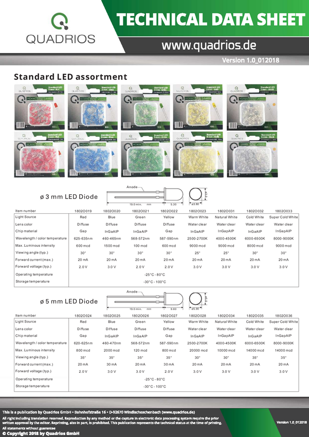 1802O034 Quadrios Akcesoria LED naturalny biały 5 mm 20 mA 3.0 V