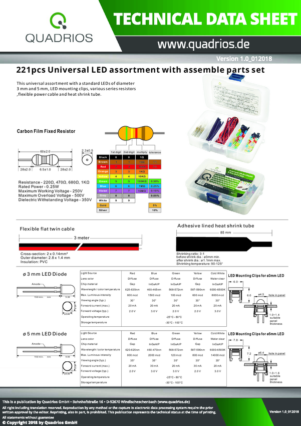 1802O015 Quadrios Akcesoria LED czerwony, zielony, żółty, niebieski, biały 3 mm, 5 m...