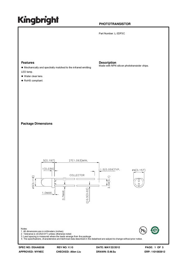 L-3DP3C Dioda LED THT Kingbright L-3DP3C, podczerwony, okrągły, 3 mm, 50 °, 1.3 mA,...