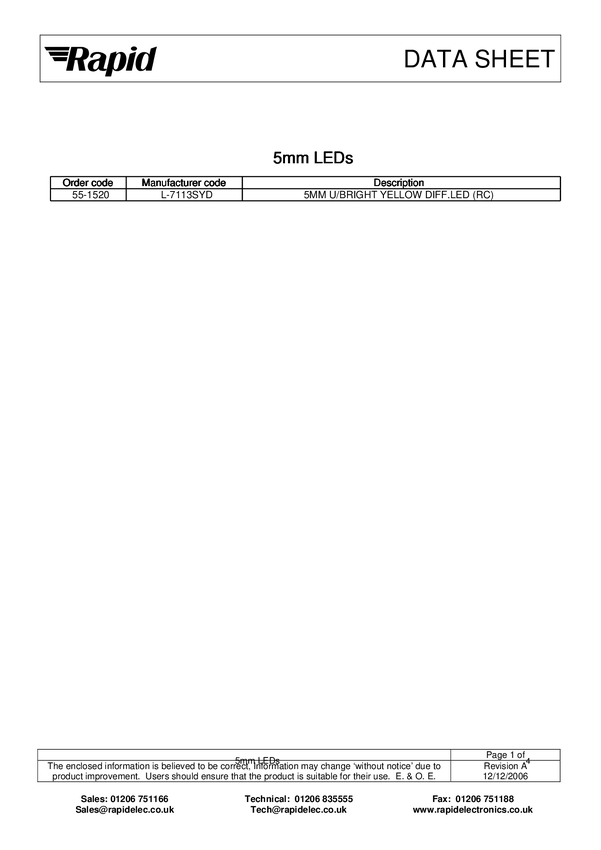 L-7113SYD Dioda LED THT Kingbright L-7113SYD L-7113SYD, 5 mm, 600 mcd, 1 szt.