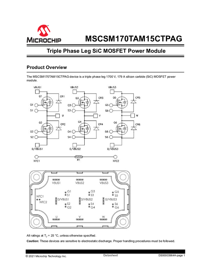 MSCSM170TAM15CTPAG 1700V Triple Phase Leg SiC MOSFET Module Datasheet