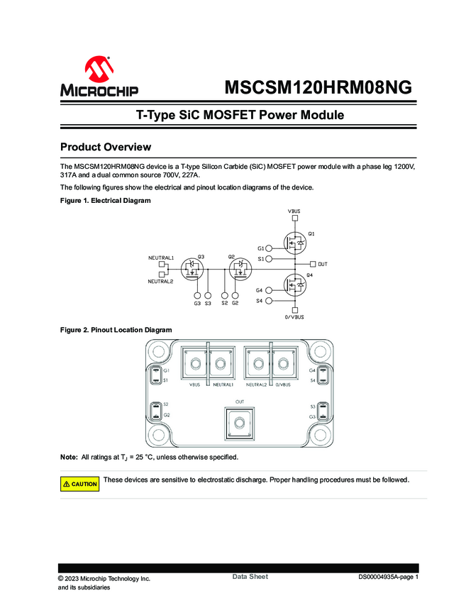MSCSM120HRM08NG 1200V T-Type SiC MOSFET Module Datasheet
