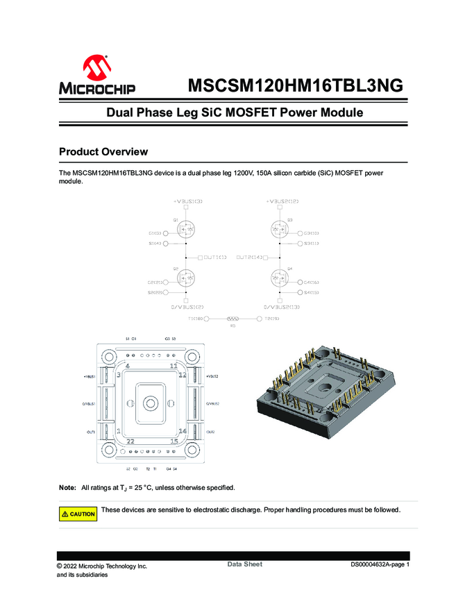 MSCSM120HM16TBL3NG Dual Phase Leg SiC MOSFET Power Module