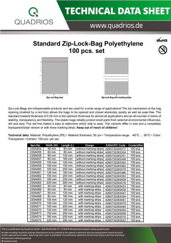 Woreczek strunowy z paskiem opisowym Quadrios 23SA075 (S x W) 220 mm x 280 mm przeźroczysty polietylen