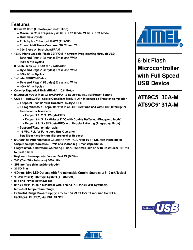 AT89C5130A-M AT89C5130A-M, AT89C5131A-M - Complete Datasheet