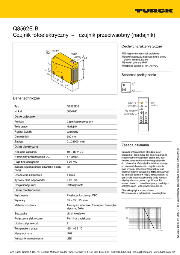3034263 Bezzwrotny czujnik fotoelektryczny Turck Q8562E-B 3034263 1 szt.