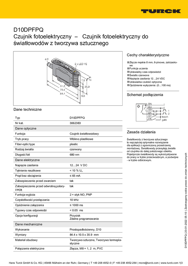 Czujnik światłowodowy Turck D10DPFPQ 3062383 1 szt.