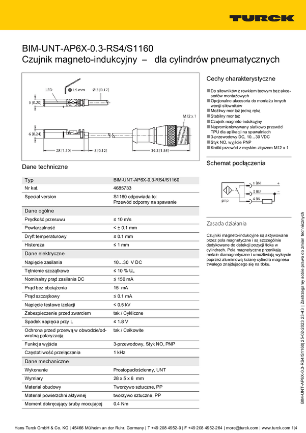 4685733 Turck Czujnik pola magnetycznego PNP BIM-UNT-AP6X-0,3-RS4/S1160