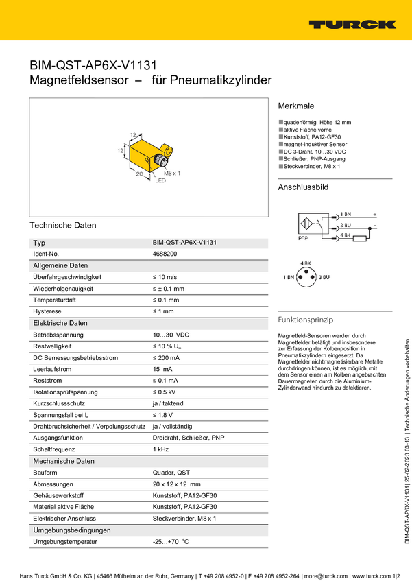 4688200 Turck Czujnik pola magnetycznego PNP BIM-QST-AP6X-V1131
