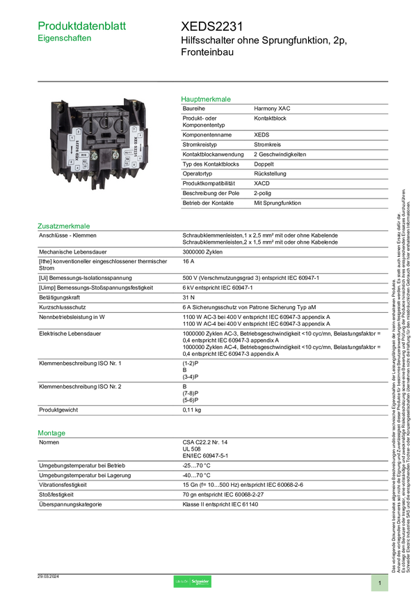 XEDS2231 Przełącznik pomocniczy Schneider Electric XEDS2231 XEDS2231, 1 szt.