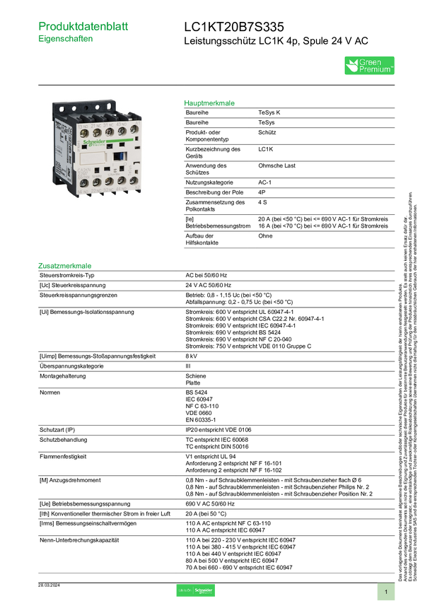 Stycznik Schneider Electric LC1KT20B7S335 LC1KT20B7S335, 1 szt.