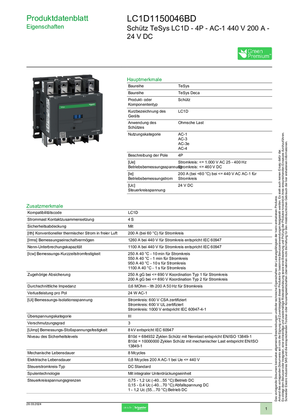 LC1D1150046BD Schneider Electric LC1D1150046BD Stycznik 1 szt.
