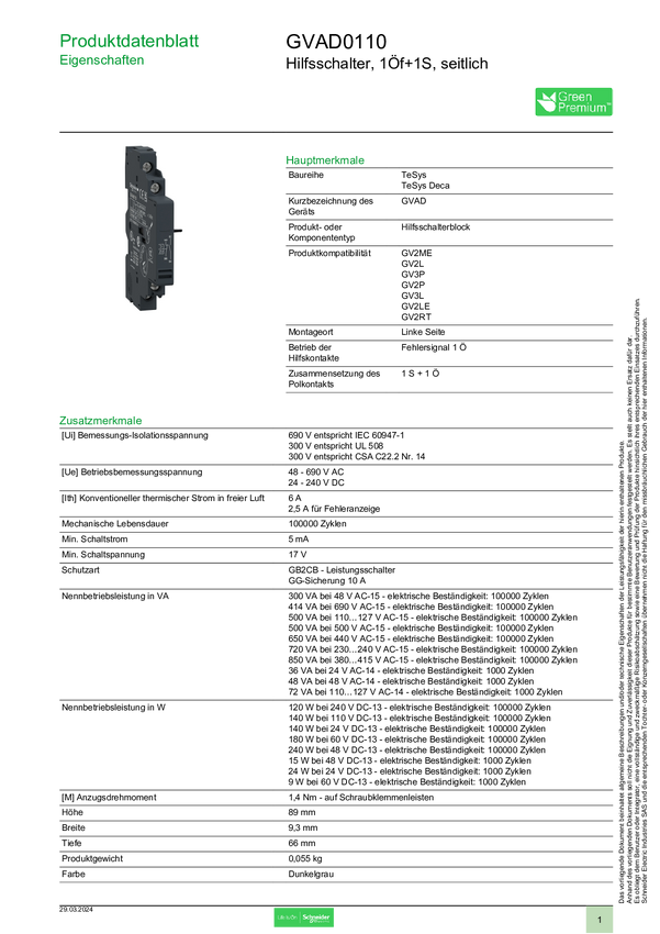 Schneider Electric GVAD0110 Przełącznik pomocniczy 1 szt.