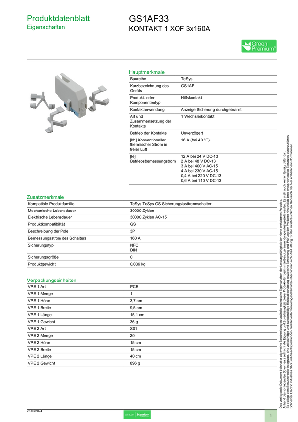 GS1AF33 Blok pomocniczy do stycznika Schneider Electric GS1AF33 GS1AF33, 1 szt.
