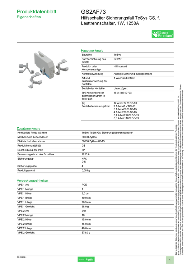 Schneider Electric GS2AF73 GS2AF73, 1 szt.