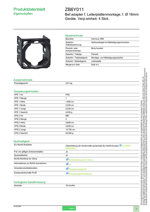 ZB6Y011 Schneider Electric ZB6Y011 Adapter montażowy 1 szt.