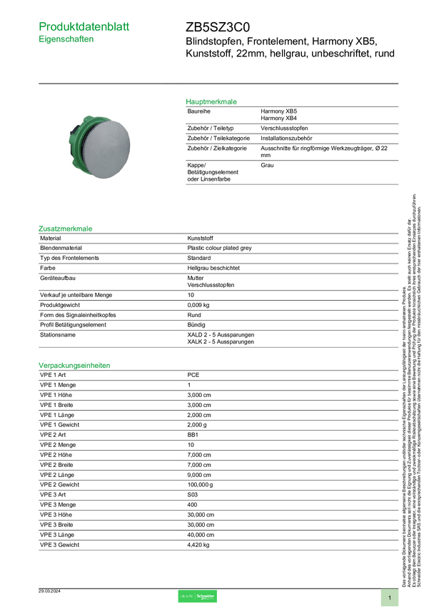 ZB5SZ3C0 Schneider Electric ZB5SZ3C0 Zaślepka 1 szt.
