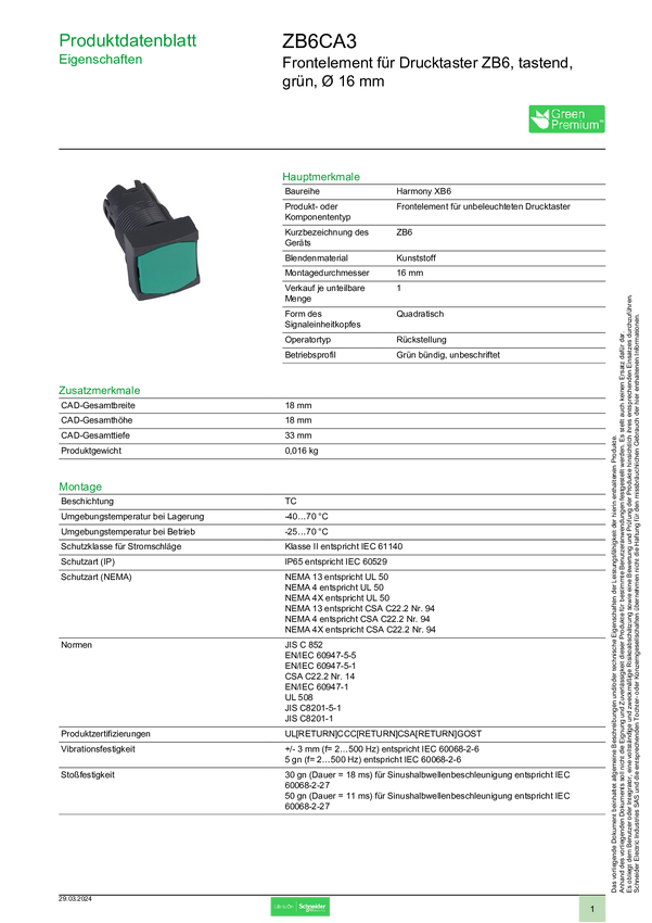 ZB6CA3 Schneider Electric ZB6CA3 Element przedni z przyciskiem 1 szt.