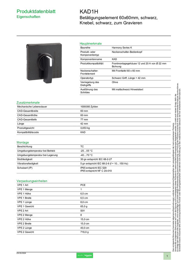 KAD1H Schneider Electric KAD1H KAD1H Pokrętło wykonawcze 1 szt.