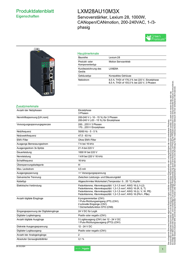 LXM28AU10M3X Przemiennik częstotliwości Schneider Electric LXM28AU10M3X