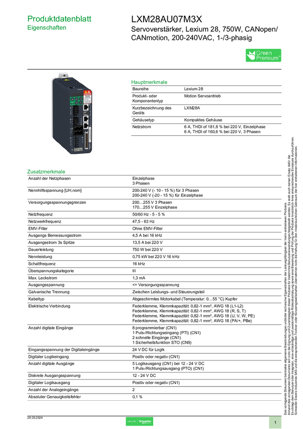 LXM28AU07M3X Przemiennik częstotliwości Schneider Electric LXM28AU07M3X