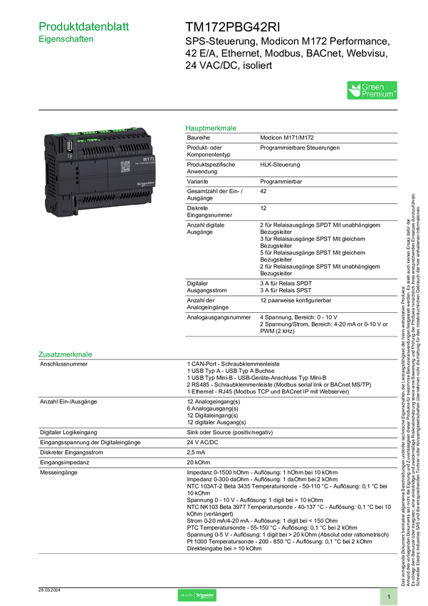 Moduł rozszerzeń Schneider Electric TM172PBG42RI
