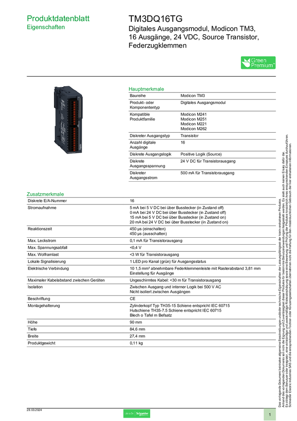 TM3DQ16TG Moduł rozszerzeń Schneider Electric TM3DQ16TG