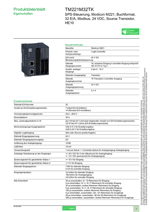 Moduł rozszerzeń Schneider Electric TM221M32TK
