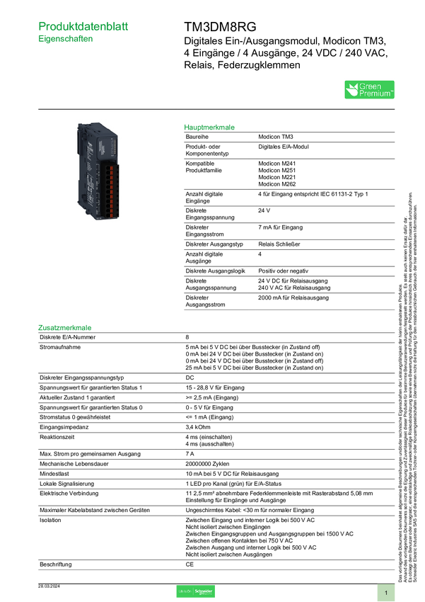 Moduł rozszerzeń Schneider Electric TM3DM8RG