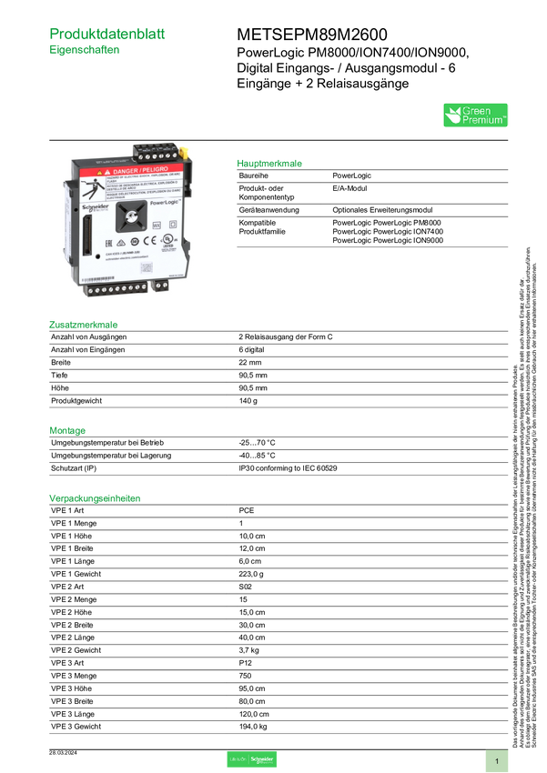 METSEPM89M2600 Moduł rozszerzeń Schneider Electric METSEPM89M2600 METSEPM89M2600