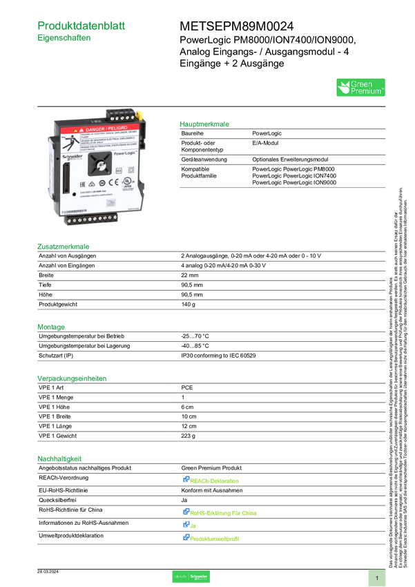 Moduł rozszerzeń Schneider Electric METSEPM89M0024 METSEPM89M0024